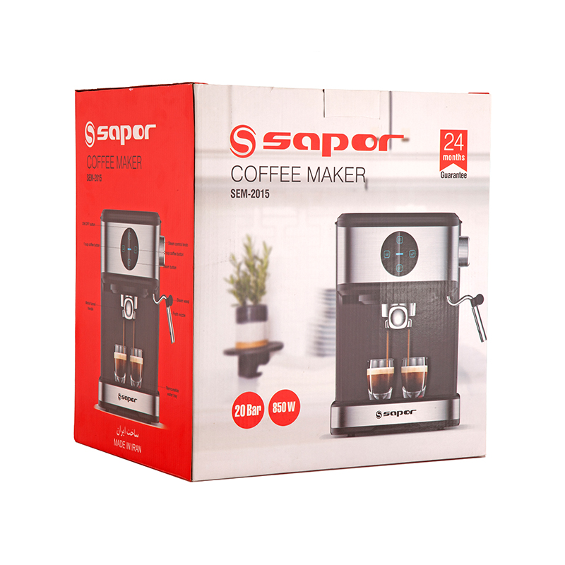 اسپرسو ساز ساپر SEM-2015 با طراحی مدرن و زیبا برای تهیه انواع نوشیدنی ها بر پایه قهوه مناسب است. از مهمترین ویژگی های این دستگاه می توان به سیستم کاپوچینو ساز و قابلیت تهیه کف شیر برای تهیه کاپوچینو، لاته و موکا اشاره کرد. ظرفیت مخزن این دستگاه ۱.۵ لیتر و دارای فشار بخار ۲۰ بار است. از دیگر ویژگی های اسپرسو ساز ساپر سینی چکه گیر با قابلیت جابجایی و شستشو می باشد.