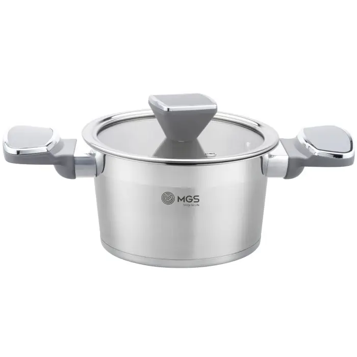قابلمه استیل سایز 16 MGS کد PS5120 از جنس استیل است، دستههای این قابلمه از جنس بدنه میباشد. این قابلمه استیل کوچک با قطر 16 سانتیمتر مناسب طبخ انواع غذاست.